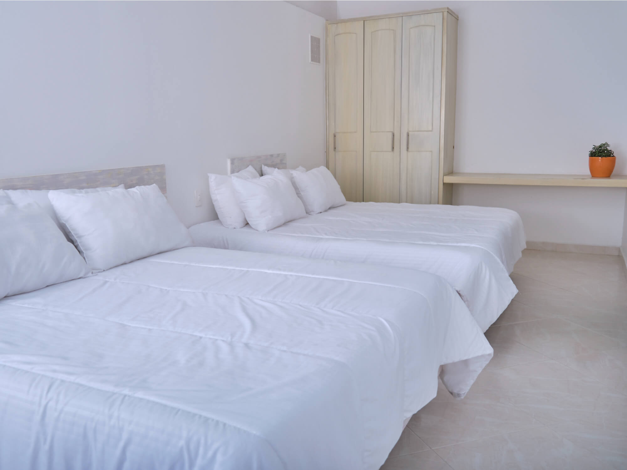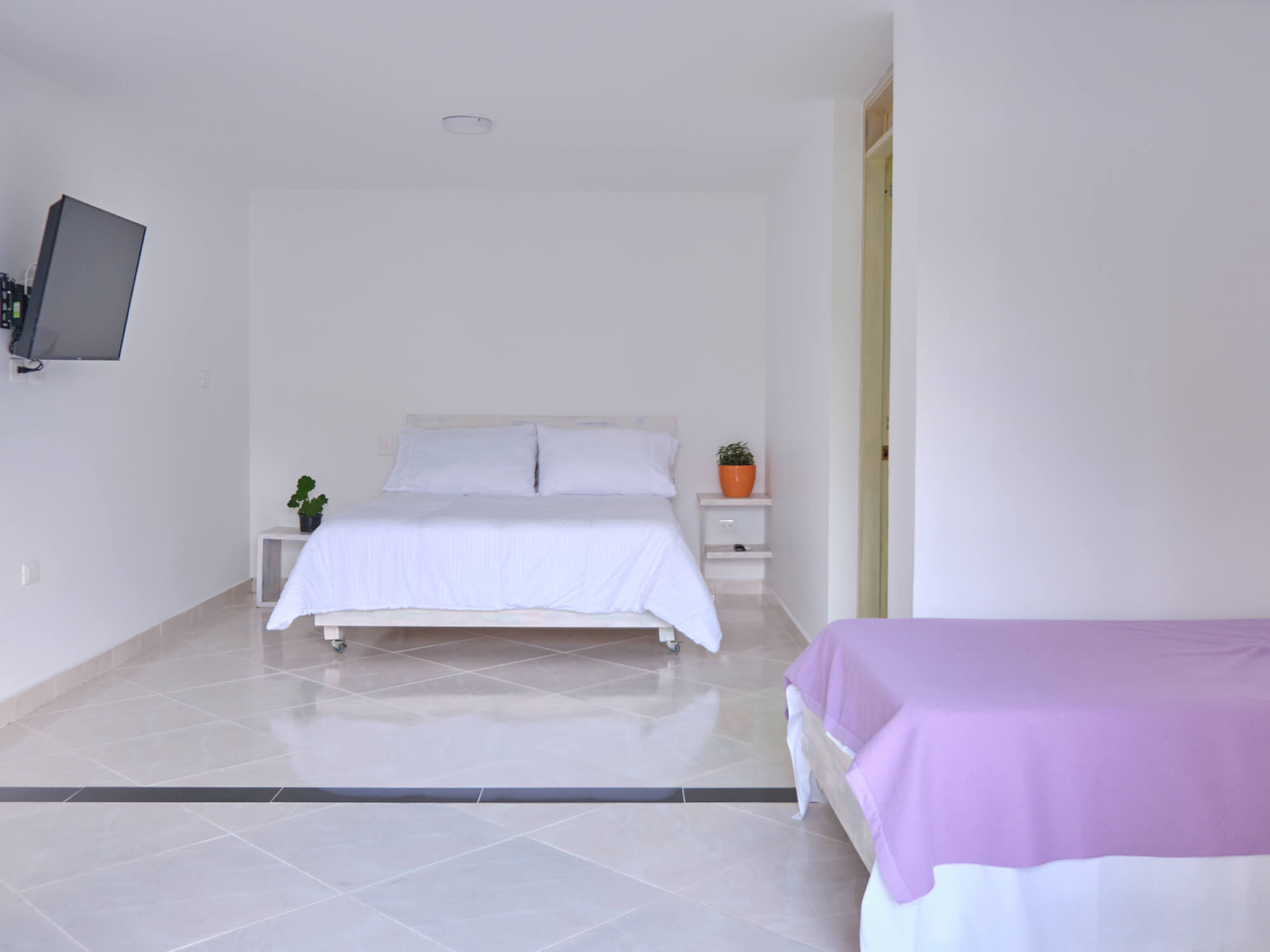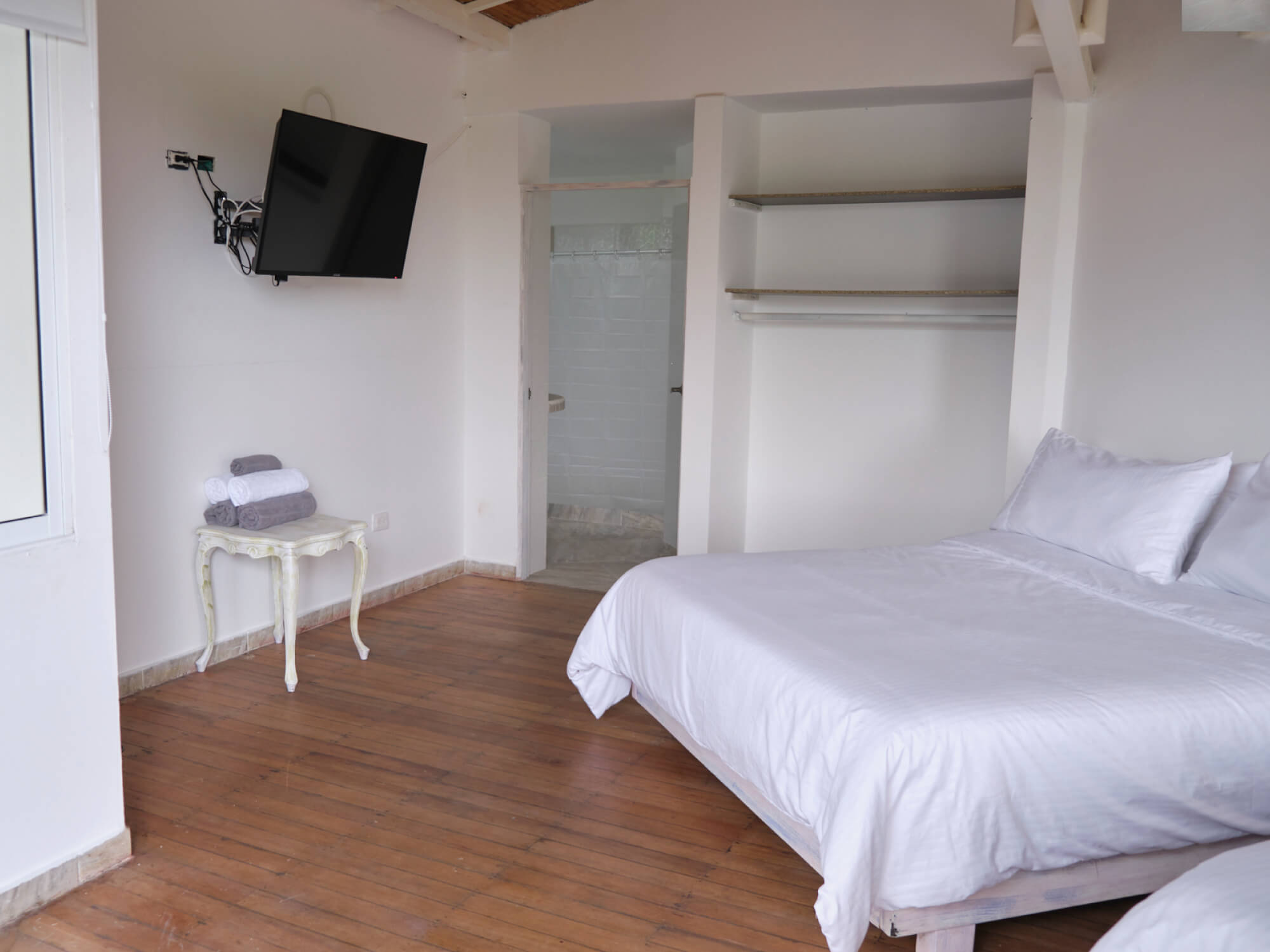 Esta amplia habitación doble cuenta con 2 camas Queen, armario, suelo de baldosa y baño privado con ducha, cuenta con TV de pantalla plana con canales por cable.